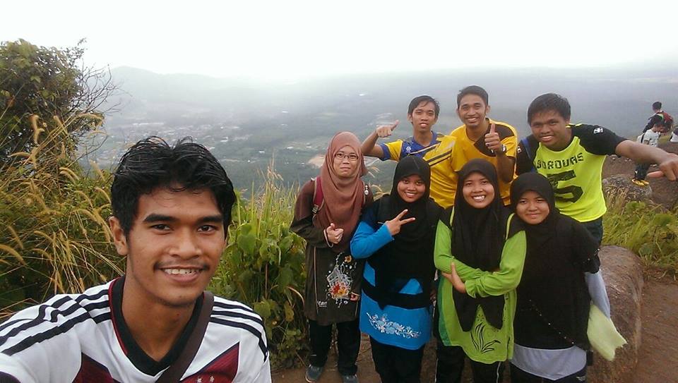 Sepanjang kat bukit broga tu, memang adik & abang selalu diperli oleh geng2 ikhwah ni. Adoiiii. Aku dah biasa dikenakan sebegini. So x kesah sangat laa. Haha. Bila dah sampai puncak bukit broga yg pertama, kami pun rehat jap & amik gambar. Pemandangan dari atas memang cantik walaupun x dpt nk tgk matahari disebabkan hujan yg x berhenti.